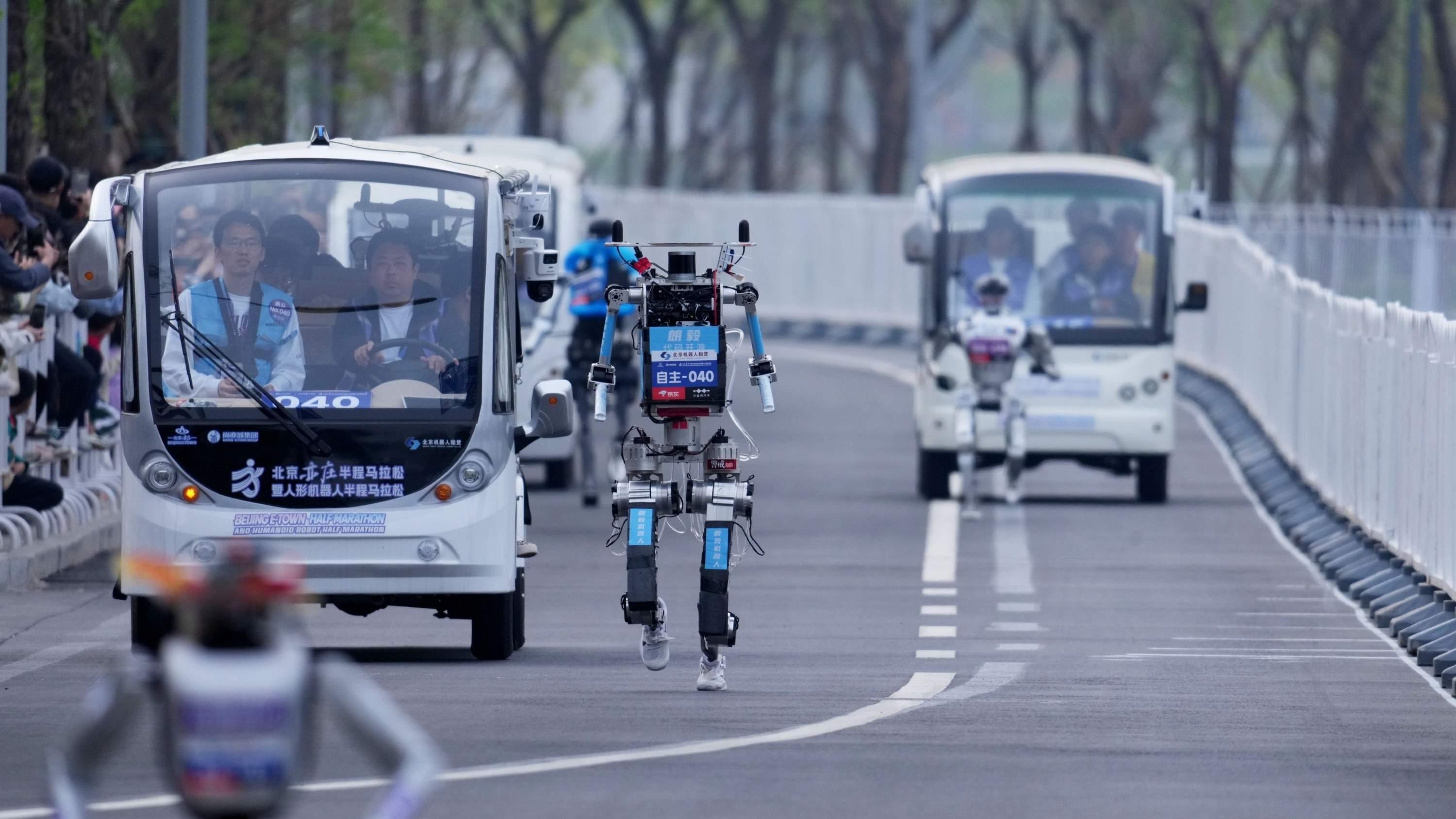 武汉“夜航星”亮相北京人形机器人半马:21公里零摔倒、零失误!