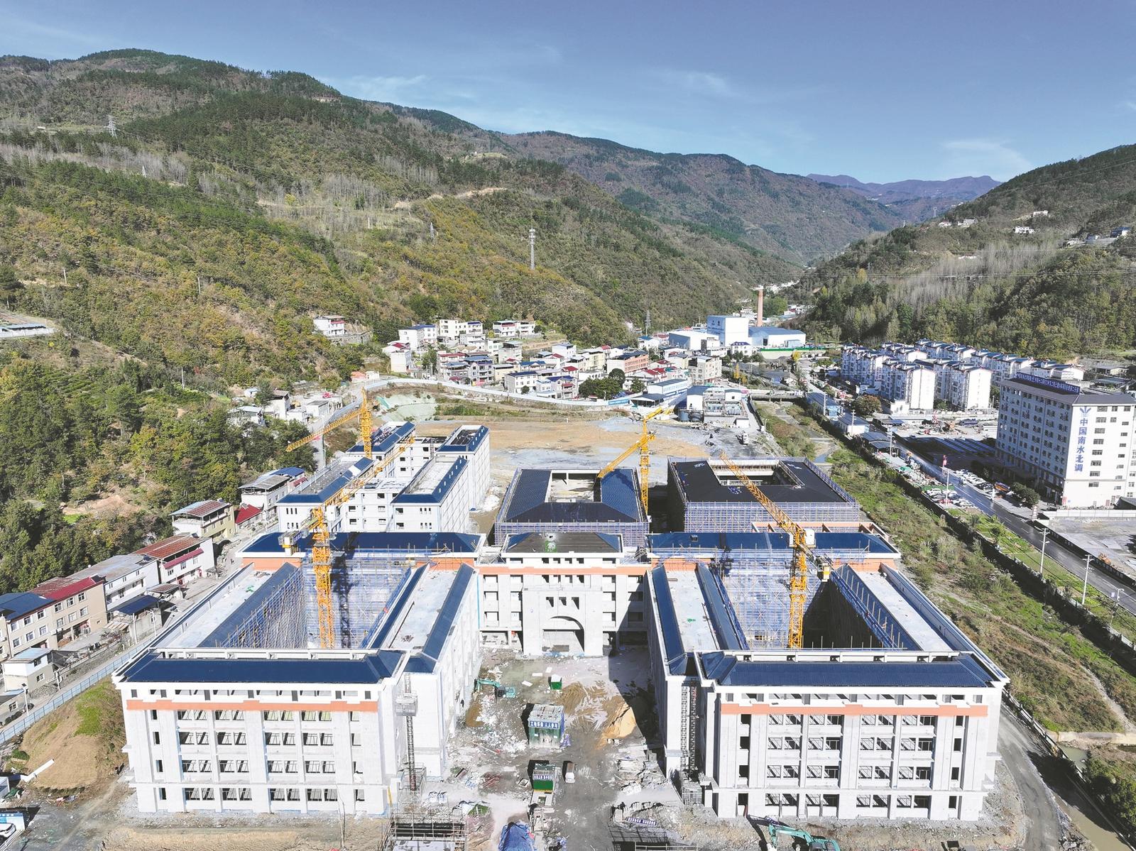 11月19日拍摄的保康县熊绎小学。日前,保康县熊绎小学建设项目的主体已全面完工,施工人员正在进行室内装修与室外配套设施施工。该小学总投资1.7亿元,建筑面积达4.2万平方米。