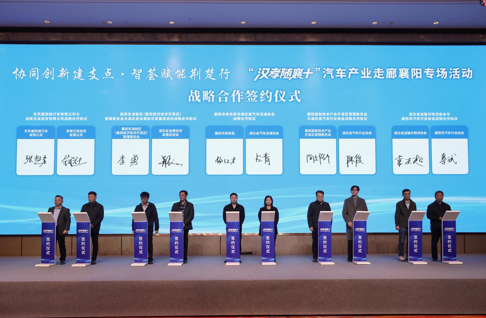活动现场,襄阳市、十堰市推介产业发展、投资环境及重点项目。襄阳市商务局、高新区、东津新区、市汽车行业协会、东风襄阳旅行车有限公司分别与省汽车流通协会、省汽车行业协会、省会展经济发展促进会、省运输与物流协会、浙商兄弟投资有限公司签署战略合作协议。