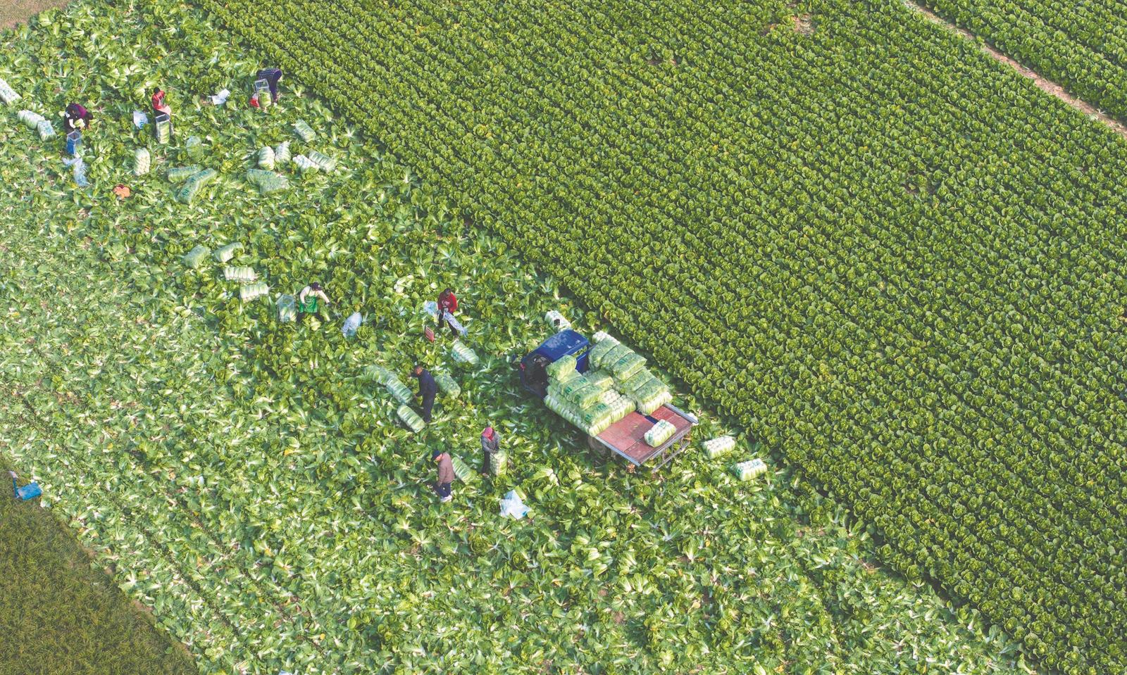 12月11日,襄城区欧庙镇张东村蔬菜种植基地,菜农正忙着采收、装运新鲜白菜,全力保障冬季“菜篮子”供应。