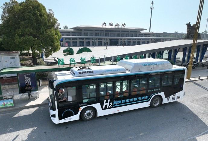 如今,12辆白绿相间的氢能公交车行驶在大冶街头。与传统柴油车相比,这些车辆每百公里可减少二氧化碳排放约57公斤。驾驶员杨俊说:“起步稳,噪音小,最重要的是没有尾气味。”