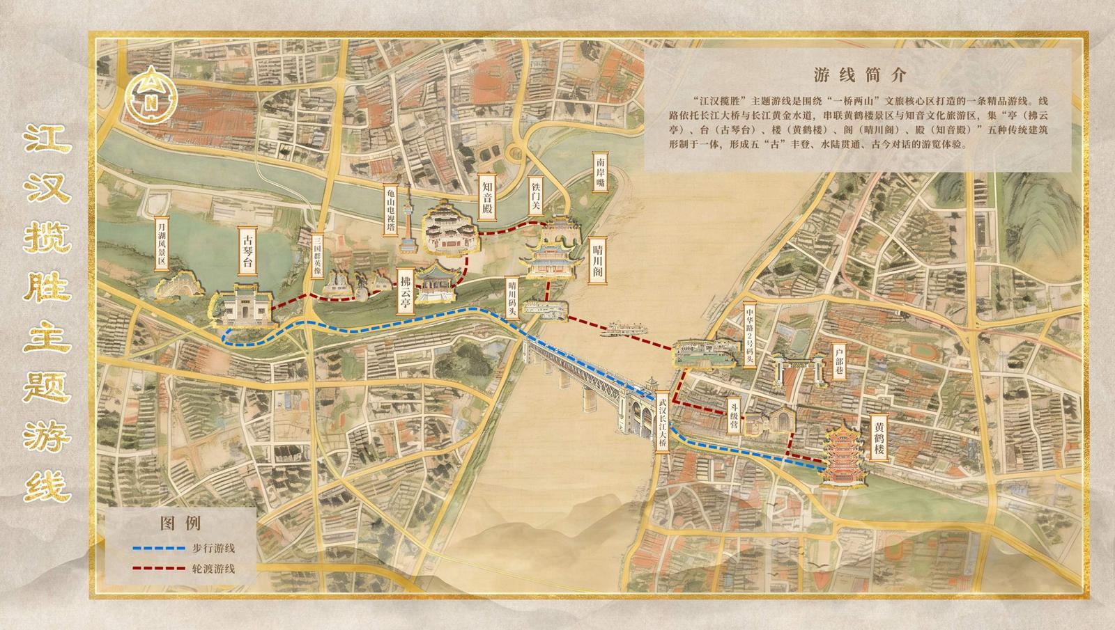 线路巧妙集纳亭、台、楼、阁、殿五种传统建筑形制于一线,生动展现“半城山水半城诗”的城市意象,致力于推动武汉丰厚的历史文化资源从静态保护向活态利用、创新传承转化,为市民游客提供可感、可知、可沉浸的高品质文旅体验。