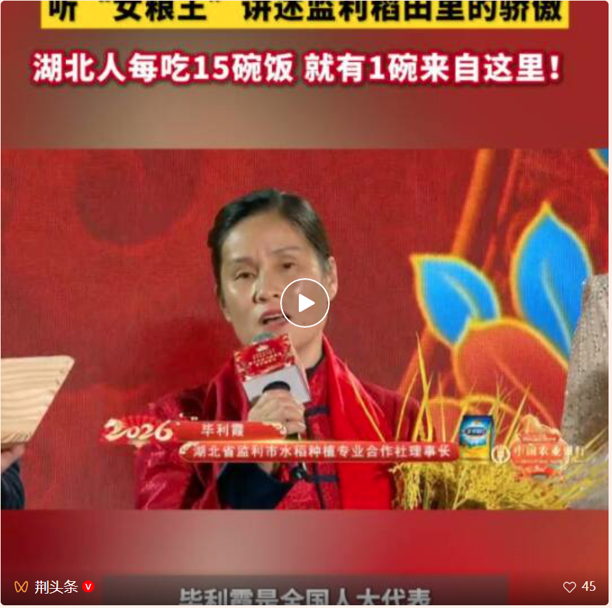 晚会特邀监利“女粮王”毕利霞与河南叶县90后“麦王”张银垒同台对话,一南一北,共话粮食安全。