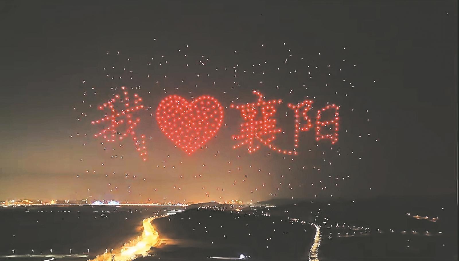无人机灯光秀。全媒体记者 李旭晖 摄