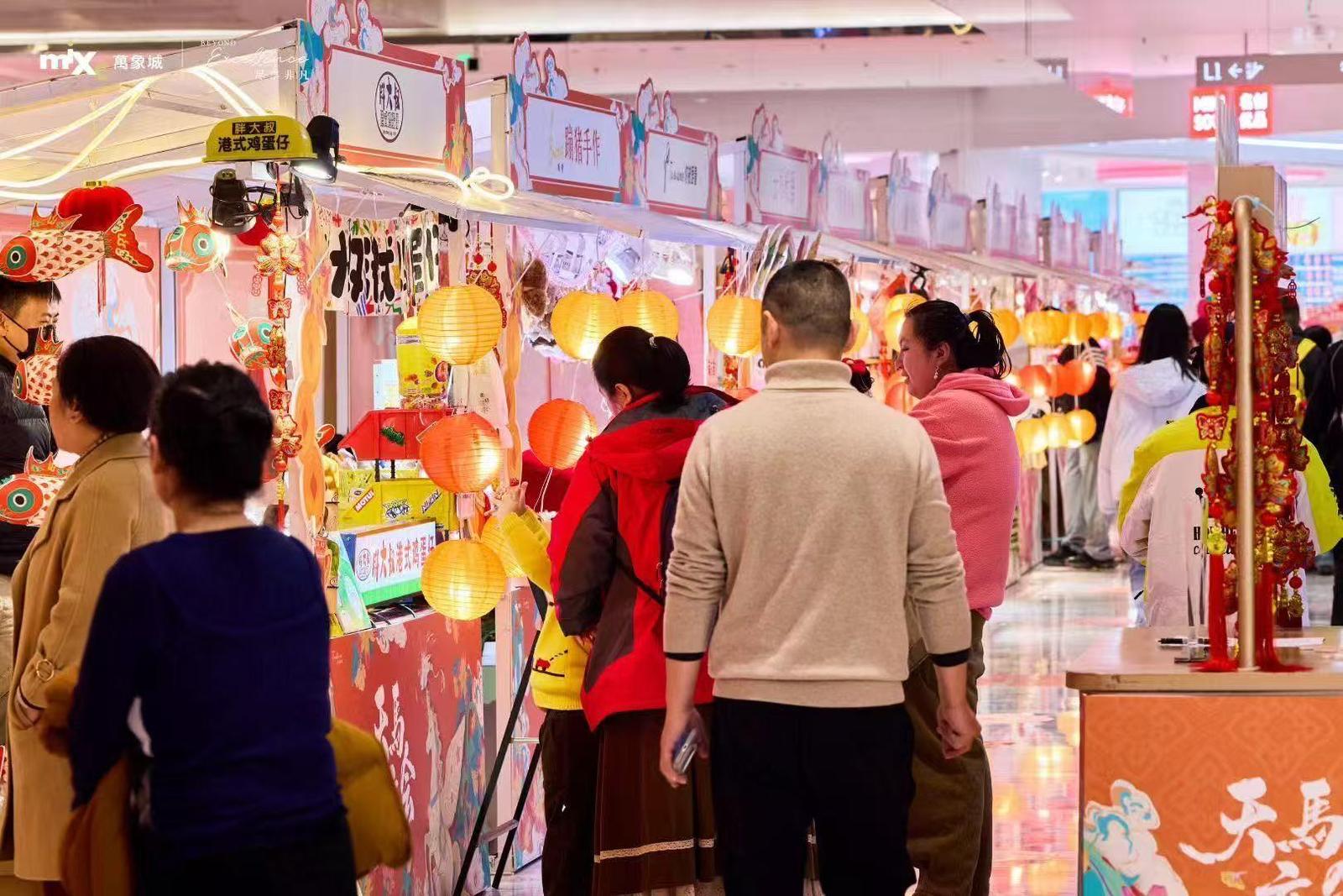 武昌万象城推广部活动策划相关负责人介绍,这是西馆中庭首次在春节期间举办市集活动,启动当天客流就比平日提升50%,活动期间周围客流同比提升22%。