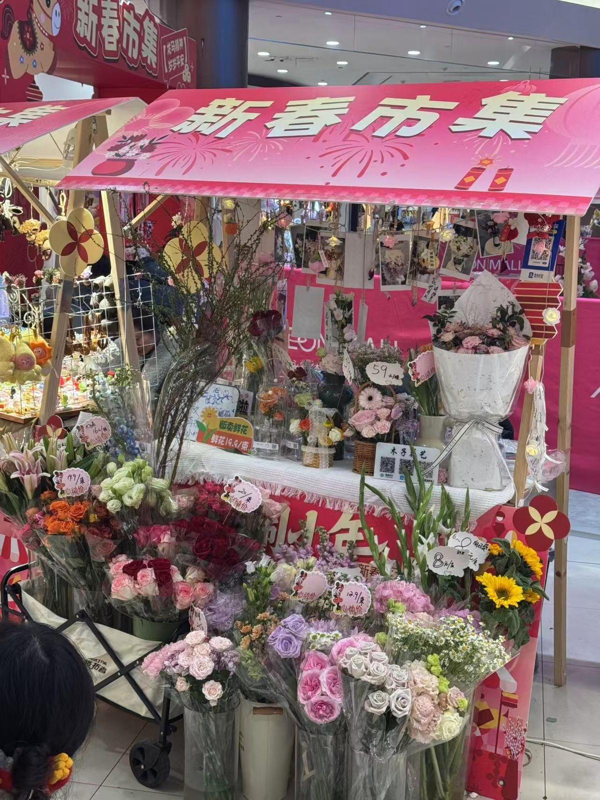 永旺梦乐城武汉金桥一楼中庭鲜花市集。实习生刘亦天 摄