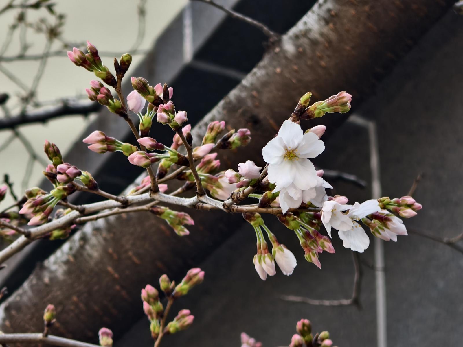 3月13日上午,晴川假日酒店的第一朵樱花开了。 通讯员马晓晴 供图