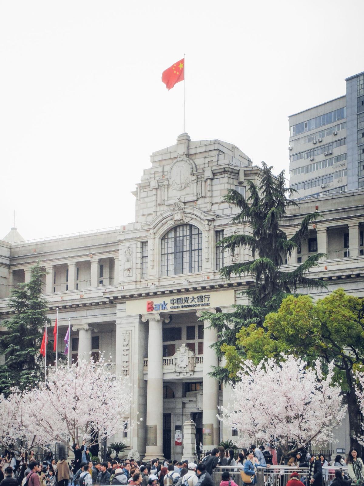 武汉关广场2025年樱花盛开引来游人如织。 (资料图片)