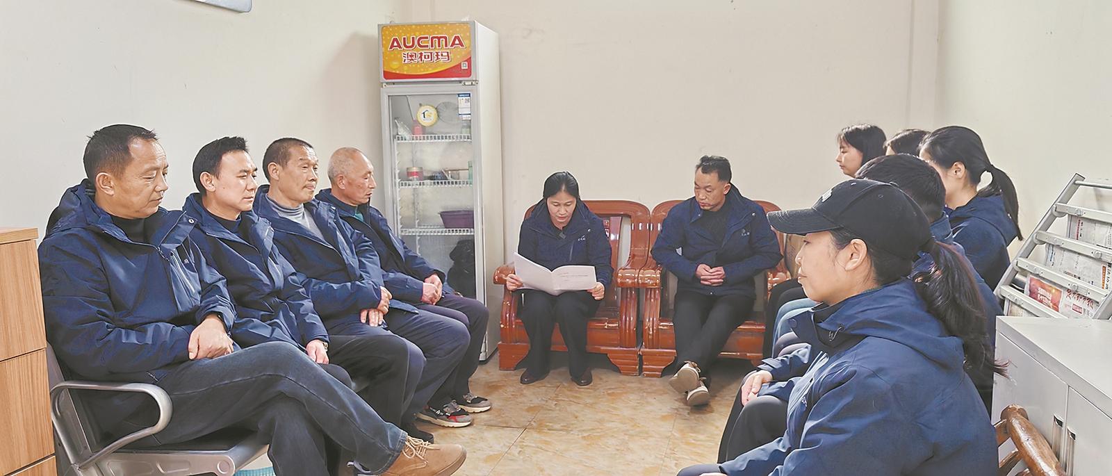 当天上午7时30分,闵洪艳带着笔记本,在村委会准时召开每日例会,向村干部宣讲全国两会精神。