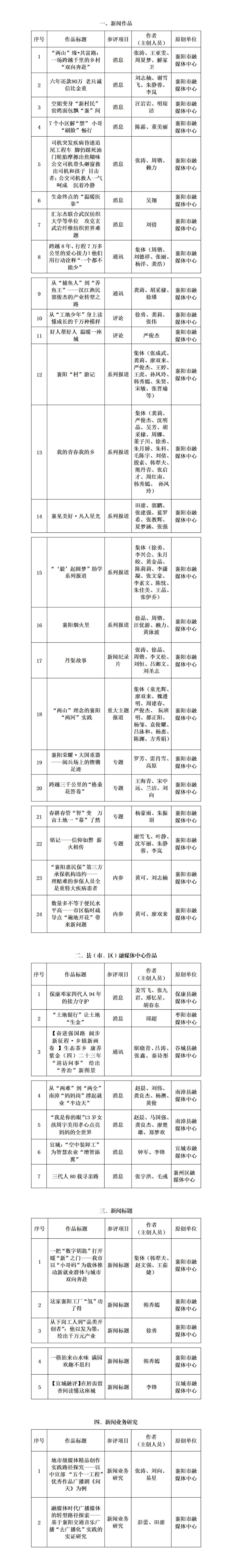 按照“2025年度湖北优秀新闻作品征集办法”要求,拟推荐《“两山”缘•共富路:一场跨越千里的乡村“双向奔赴”》等38件作品参评2025年度湖北优秀新闻作品征集。现将推荐作品目录予以公示,公示期从3月25日至3月29日。如发现以下推荐作品材料与实情不符,可通过电话、信函等方式发表意见。联系电话:13908673777、13308672776。