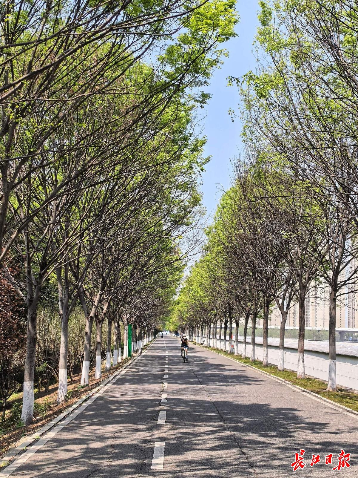 年轻的唐女士6年前搬到后湖居住,常到张公堤骑行。她说,依托张公堤而建的环汉口绿道,全长约30公里,连接汉口江滩公园、汉江江滩公园,道路平整,没有机动车穿行,挺适合骑行。