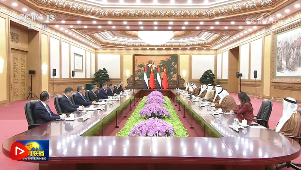 习近平指出,阿联酋是中国的全面战略伙伴,中方始终高度重视发展同阿联酋的关系。在双方共同努力下,中阿关系保持健康稳定发展,政治互信不断加深,务实合作稳步推进,人文交流丰富多彩。巩固和提升中阿关系是双方的坚定共识,符合两国人民期待。中方愿同阿方携手同行,打造更加稳固坚韧、富有活力的中阿全面战略伙伴关系。双方要继续在涉及彼此核心利益和重大关切问题上相互支持,保持高层交往,筑牢战略互信。加强发展战略对接,在能源、投资、贸易、科技等领域深挖潜力,深化互利合作。推动教育、民航、旅游等合作取得更大进展,密切人文交流,夯实民意基础。在联合国、金砖国家等多边平台增进协调合作,以中阿关系的稳定性应对国际和地区形势的不确定性,共同推动构建人类命运共同体。
