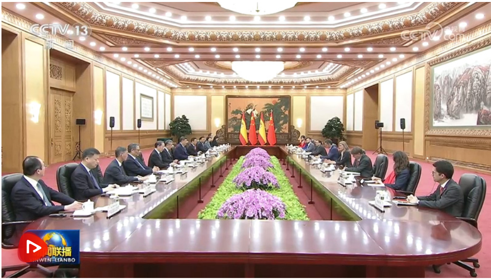 4月14日上午,国家主席习近平在北京人民大会堂会见来华进行正式访问的西班牙首相桑切斯。