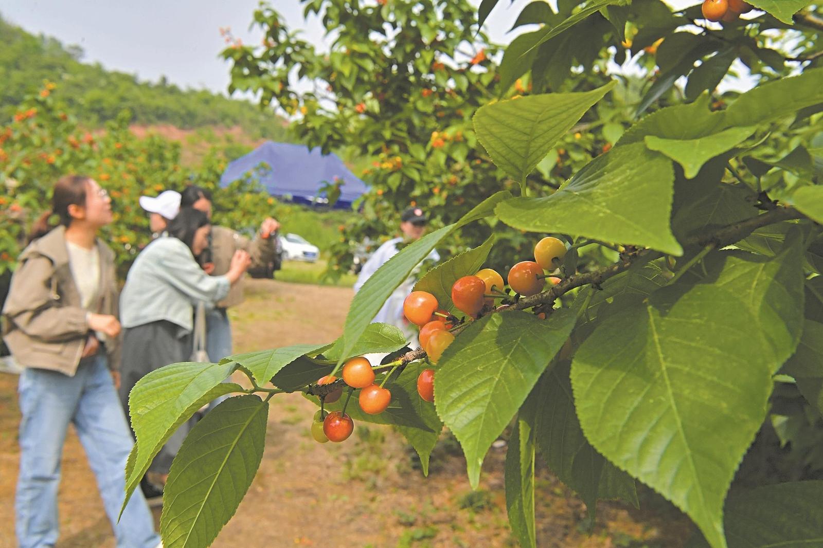 4月23日,南漳县城关镇大山村千亩樱桃园游人如织,接待市民游客500余人。不少游客结伴前来观光打卡、漫步田园,乐享乡村风光、品尝农家风味,采摘樱桃成为休闲附加体验。